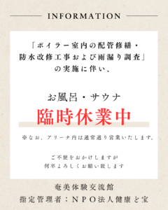 浴場・サウナ休業のおしらせ